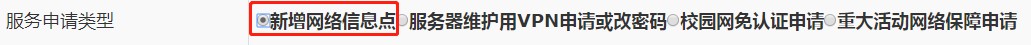 3.进入“网络服务相关申请”,在“服务申请类型”中选择“新增网络信息点”,并填报相关信息。