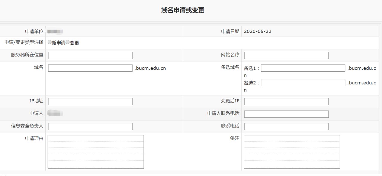 4.“申请人”、“申请人联系电话”、“信息安全负责人”和“联系电话”必须填写,申请人应为本校职工,信息安全负责人应为系统业务的主管领导,否则不予办理