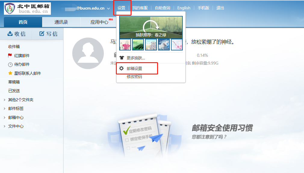 2.点击邮箱界面“设置”-“邮箱设置”