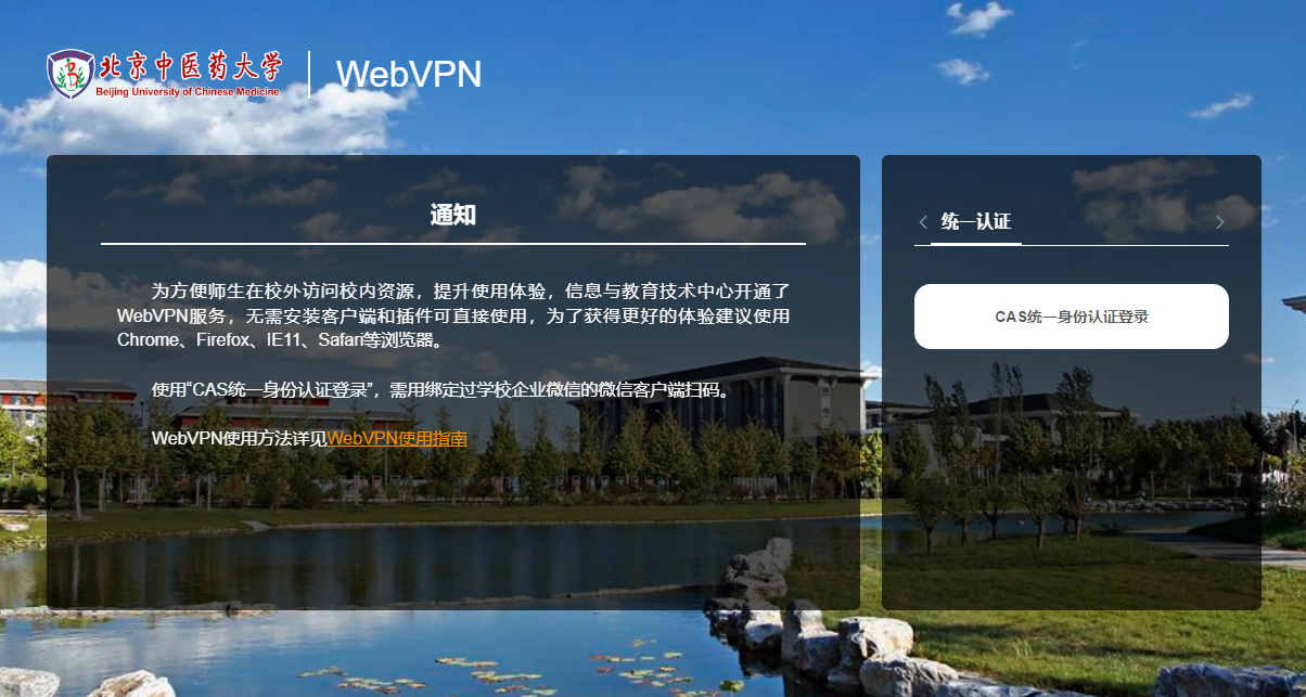 1.浏览器输入网址:https://webvpn.bucm.edu.cn