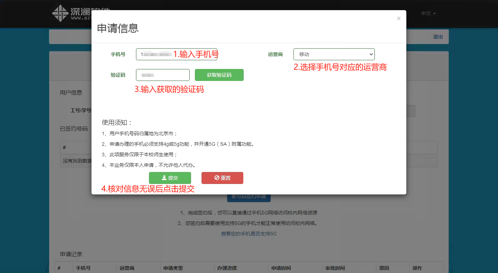 目前学校先与中国移动北京公司合作开通5G双域校园专网业务,使用北京移动5G号码的我校在职职工和在籍学生可申请开通(教师离职、学生毕业离校后此服务将自动终止)。受运营商政策及技术条件限制,京外移动号码、联通、电信5G号码暂不支持开通此服务。