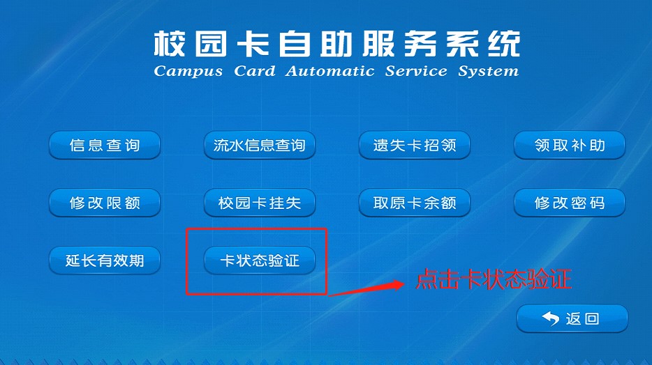 当前位置: 首页» 公共服务» 一卡通服务» 校园卡通过圈存机自助办理消费权限延期业务操作步骤