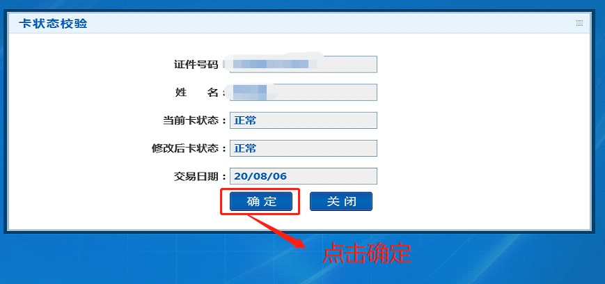 三、等读到卡片信息后,点击确定,卡消费日期更新完成。