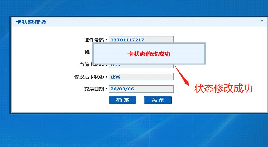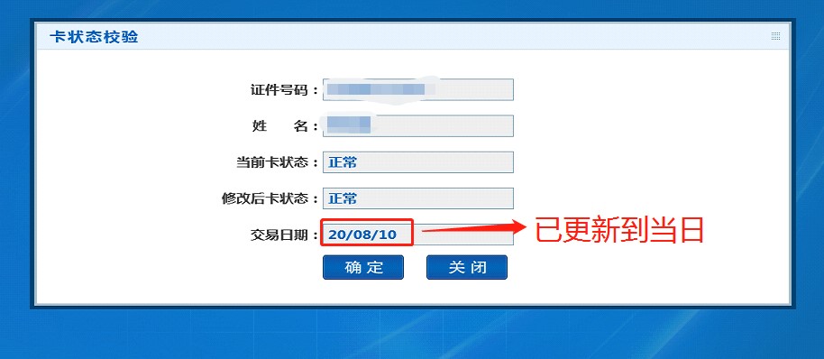 四、再次点击卡状态验证模块,看到卡消费日期更新到今日。