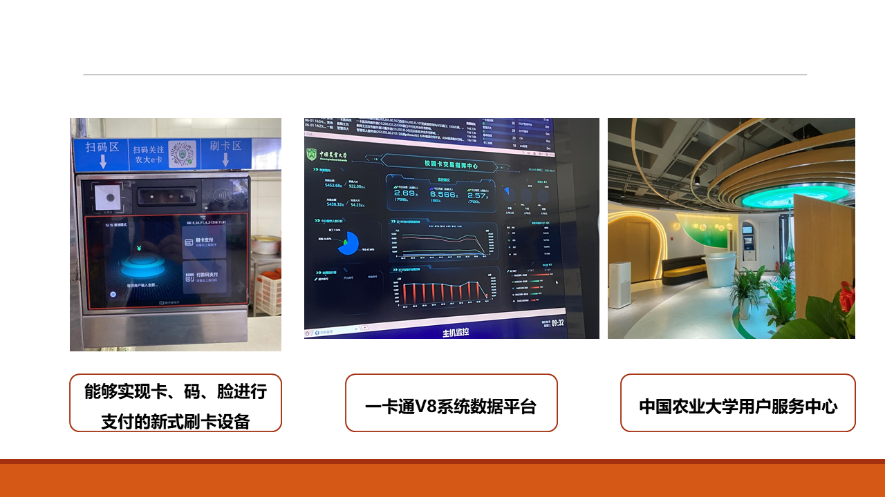 2023年6月16日、6月21日,信息与教育技术中心由张未未主任带队分别前往中国社会科学院大学网络中心、中国农业大学网络技术中心,围绕校园一卡通系统的建设与应用情况开展调研,两家高校作为校园一卡通V8系统应用的典型用户,从校园一卡通系统升级的原因,建设总体目标、升级路径、实施方案、应用效果进行了介绍。同时,实地走访食堂、浴室等一卡通应用的场景,查看能够实现卡、码、脸进行支付的新式刷卡设备的应用情况,并参观了两所高校的校园一卡通用户服务中心。